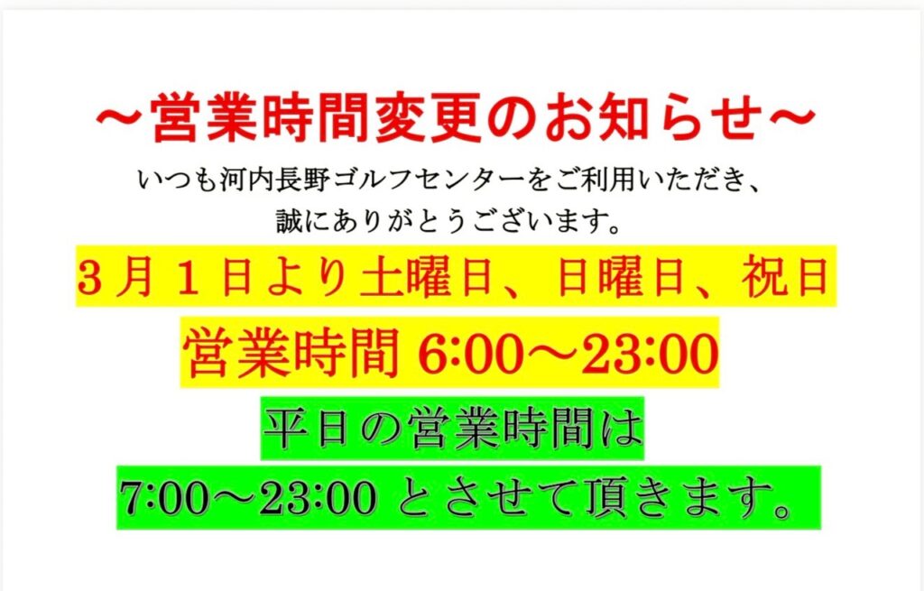 平素より河内長野ゴルフセンターをご利用いただき、誠にありがとうございます⛳